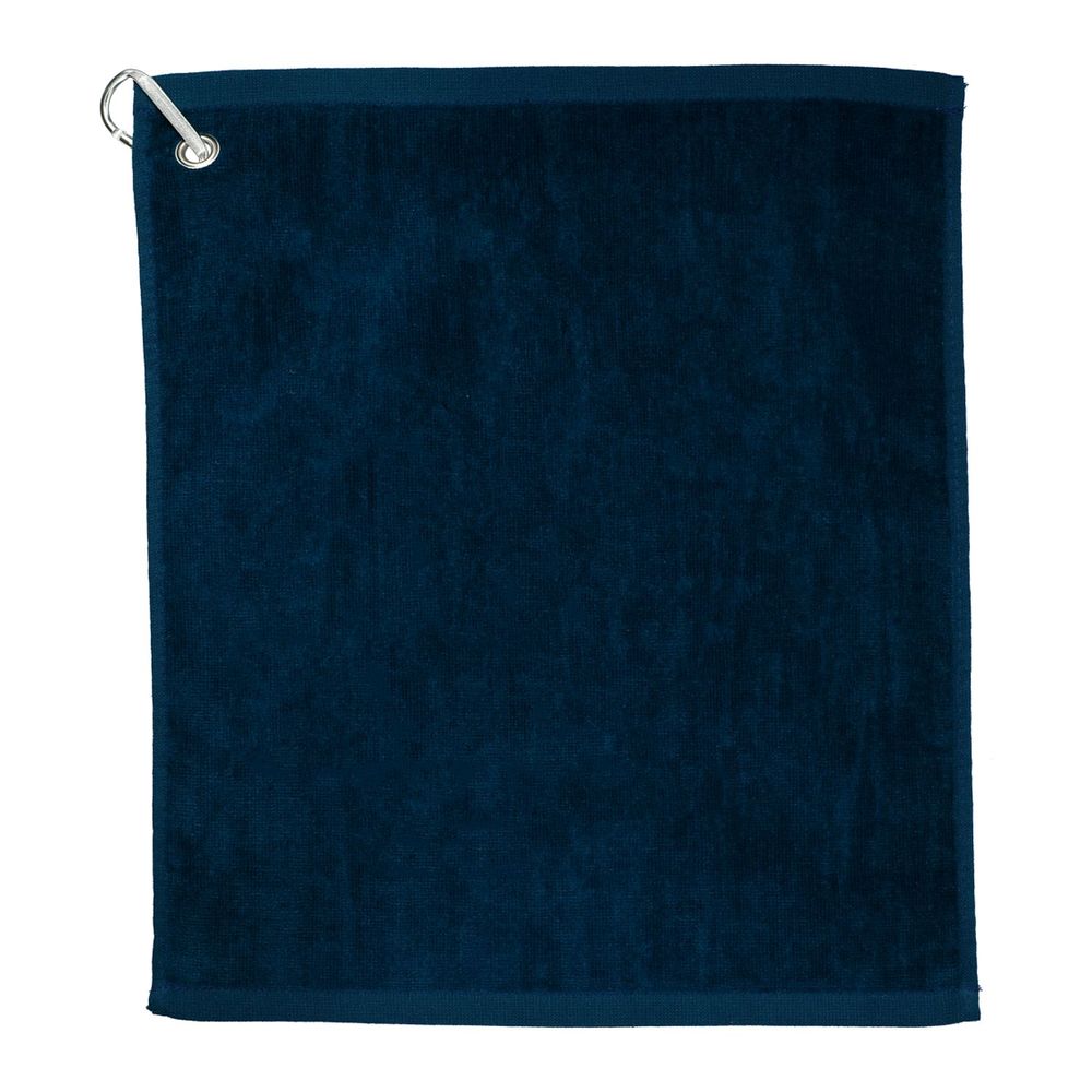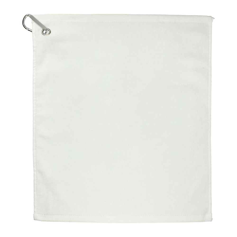 The lightweight 18" x 15" Terry Golf Towel is made with 100% cotton and comes with a grommet, plus an aluminum carabiner clip that can be easily attached to your golf bag. Weight is 1.3lbs. per dozen.
